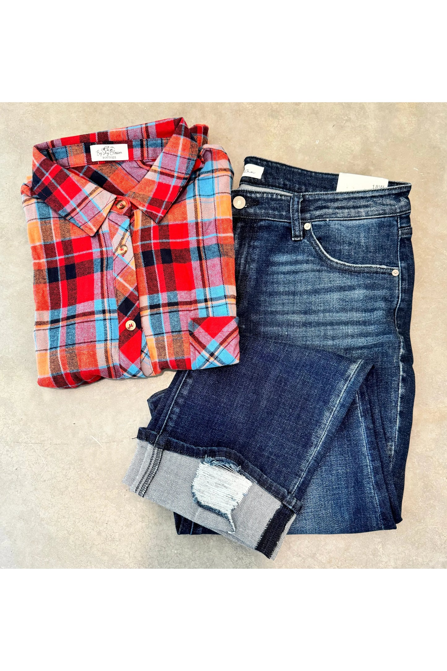 Big Sky Blossom Curvy Plaid Goodness Shirt