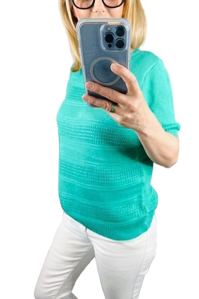 Hi! I've got just the thing for you. This cozy emerald sweater is the perfect spring pullover for you! It's made of a soft, lightweight sweater material that is comfortable and stylish. The design features an eye-catching combination of textures, including ribbed edges and a woven pattern. The length is perfect for pairing with jeans or shorts. Plus, it's machine-washable and easy to care for.